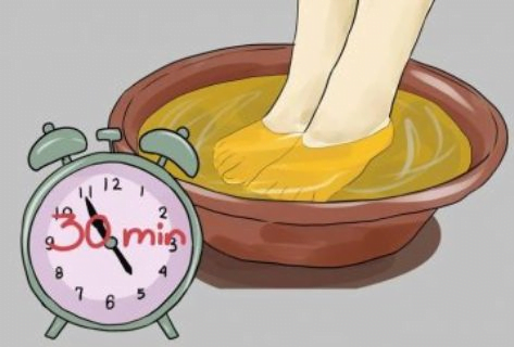 All you have to do is to heat the water, and when lukewarm, place the feet in it. Pour a glass of apple cider vinegar, and a few drops of lavender oil.