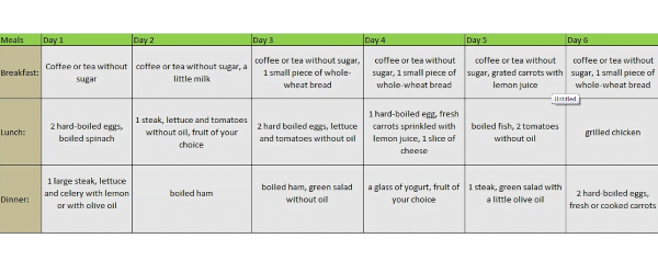 After the 7 days, repeat all over once again, for another 7 days. After the period of 2 weeks, it is necessary to take a break. When you have finished the diet it is recommended to not consume more than 1,500 calories a day, unless you want the yo-yo effect.
