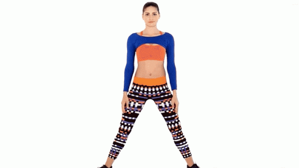 Stand with your feet wider than your shoulder width. Turn the toes 45 degrees outwards and bend your knees, providing that your hips are parallel to the floor.